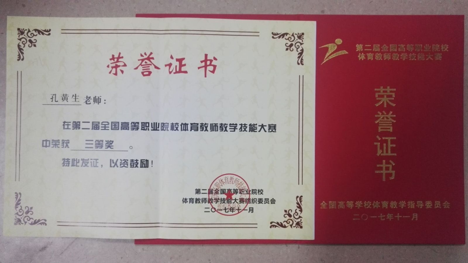 近日,第二届全国高等职业院校体育教师教学技能大赛,在苏州市职业大学举行。来自28个省、自治区、直辖市的251名体育教师参赛。经由120名专家现场裁判测评,我院基础部专任教师孔黄生荣获本届大赛三等奖,为上海队和学校赢得了荣誉。