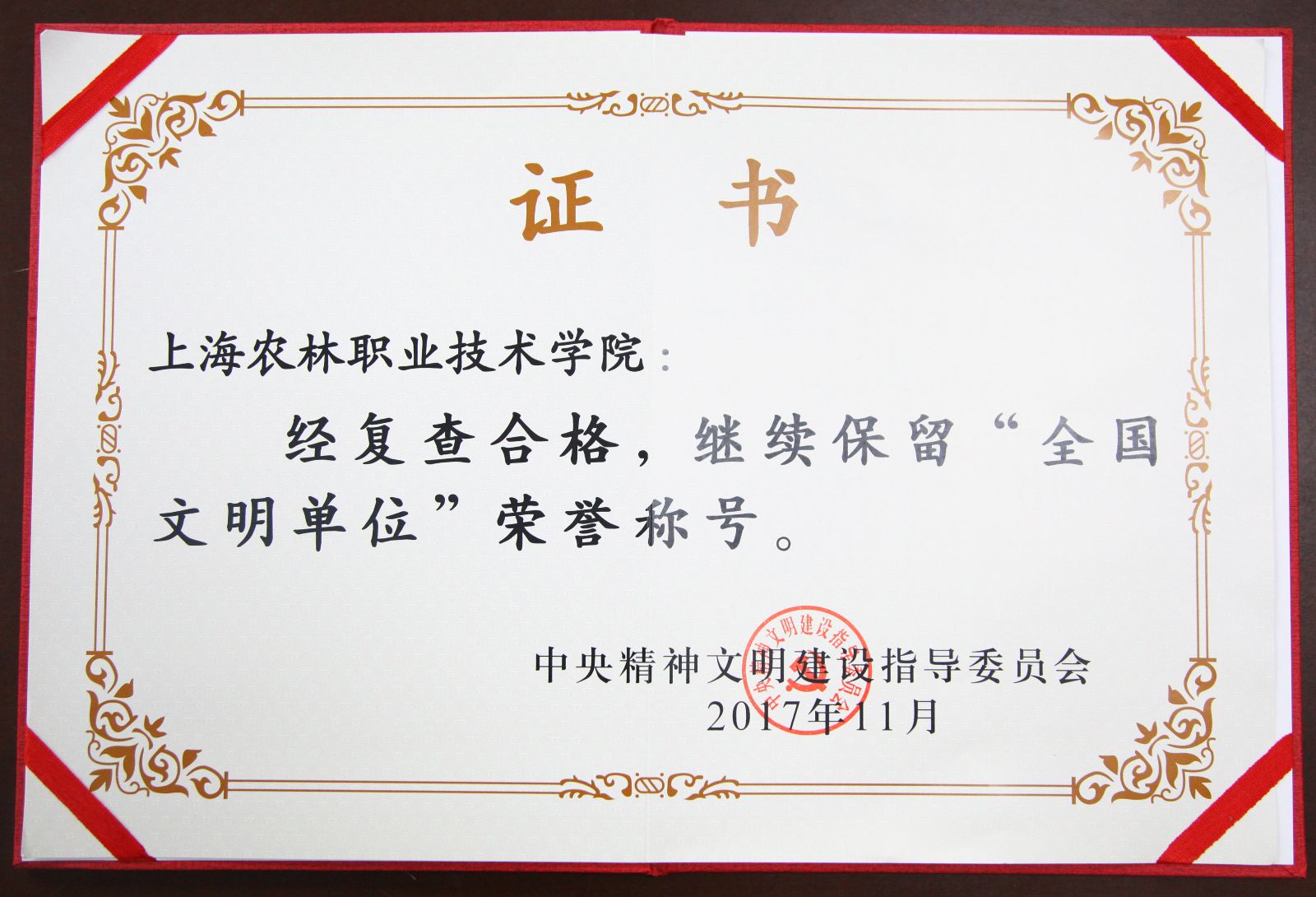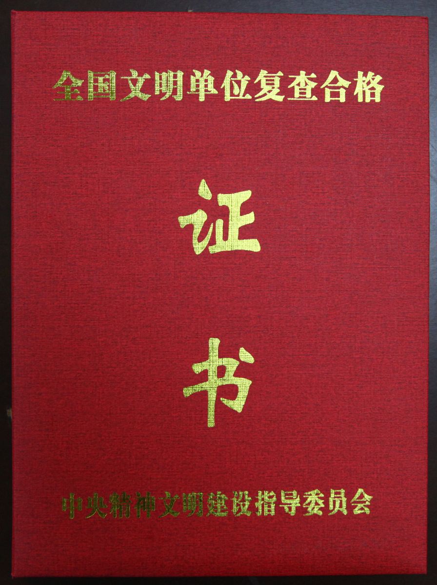 近日,我院接到复查“全国文明单位”合格通知,并领取了由中央精神文明建设指导委员会(简称中央文明委)颁发的合格证书。这是我院自2015年获评“全国文明单位”以来,时隔三年,首次迎接全国文明单位复查并通过验收,继续保留“全国文明单位”荣誉称号。中央文明委每三年评选表彰一次“全国文明单位”,同时对已获评“全国文明单位”称号的单位进行复查。